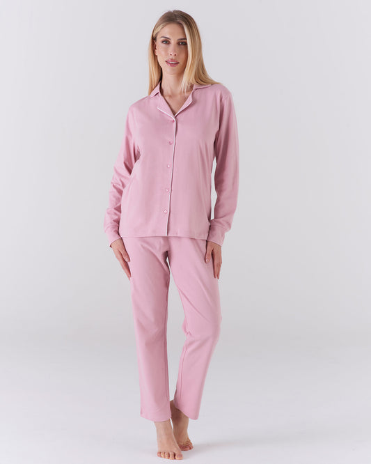 Pigiama lungo donna aperto tinta unita