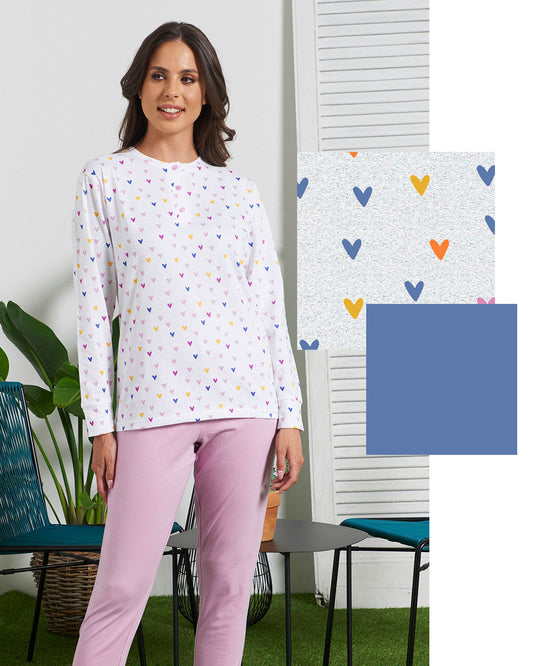 Pigiama donna top giromanica e pantalone corto - fantasia cuoricini