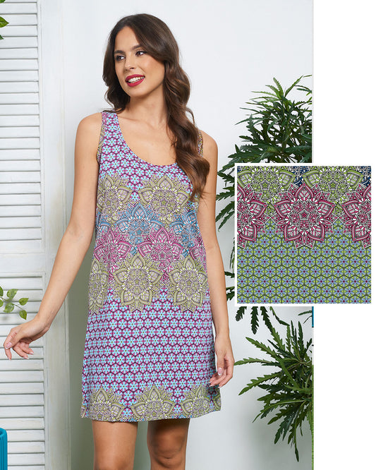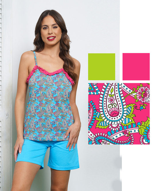 Pigiama donna top bretelline e pantalone corto - fantasia etnica